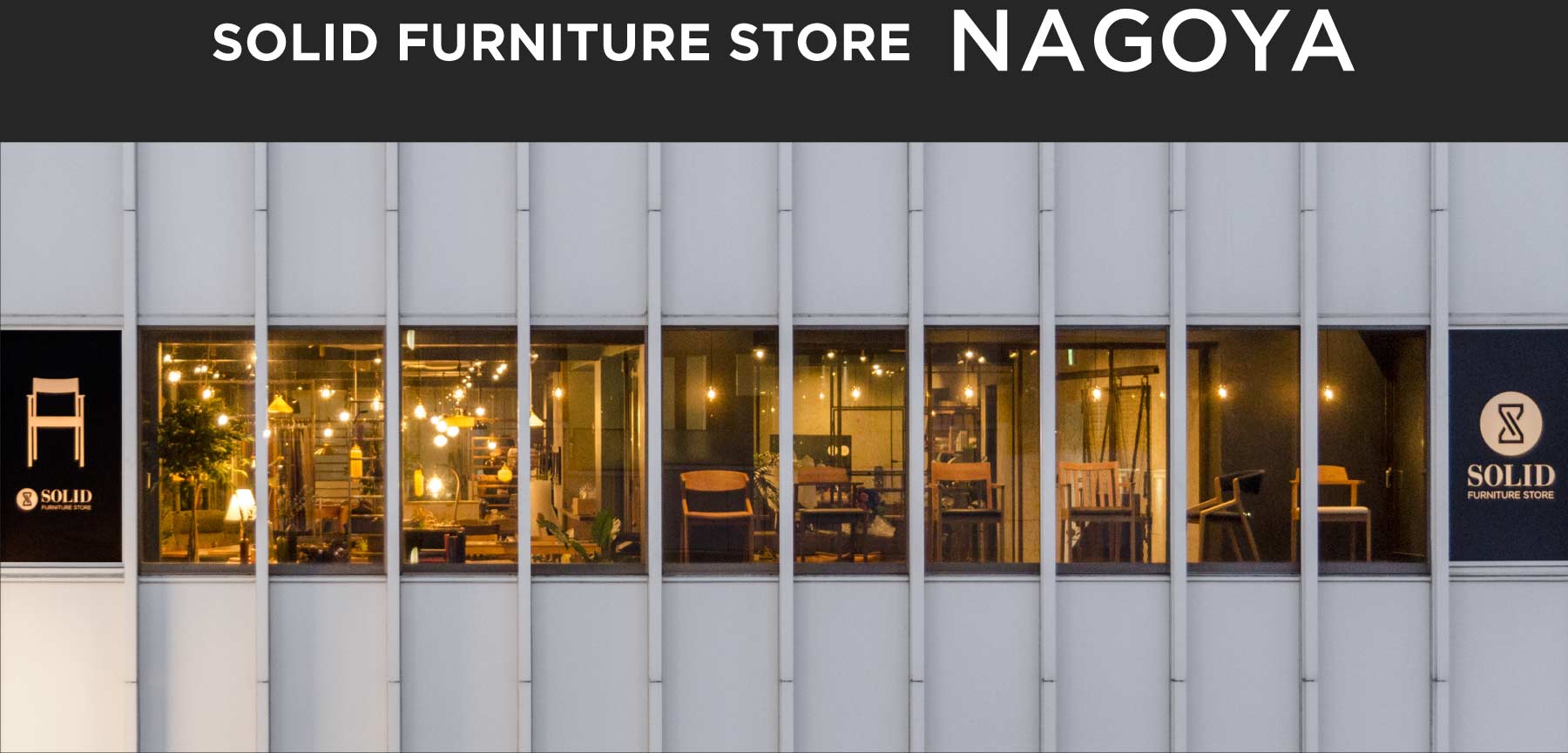 SOLID名古屋店は、約70坪の広々とした店内に、無垢材家具を中心とした約350点のアイテムを展示しています。天然木の家具に調和する照明や雑貨も多数取り揃えており、暮らしをトータルにご提案できる空間づくりを大切にしています。